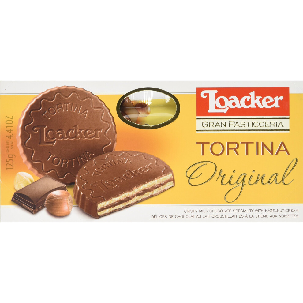 Loacker Tortina Milk Chocolate Covered Wafer Biscuit with Hazelnut Cream, 125g
