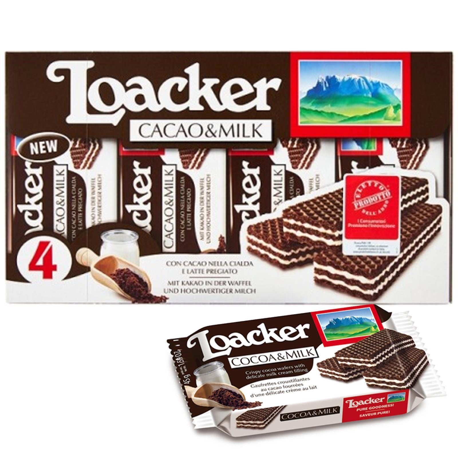 Cookie Wafer Loacker Classic Cocoa & Milk Chocolate 4 Snack 45 Gr