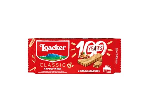 Loacker, Napolitaner Crispy Wafers, Italian Hazelnut Cream Wafers, Hazelnut Flavour, Original Wafer Biscuits, 90 g