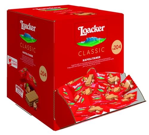 Loacker Classic Napolitaner Wafers, Italian Hazelnut Crispy Cream Wafers, Hazelnut Flavour, Original Wafer Biscuits, Bulk Pack 204 x 3.2 g