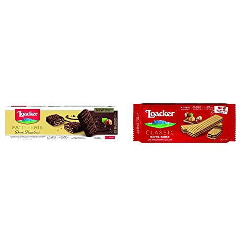 Loacker Dark Chocolate Hazelnut Biscuits, Box of Chocolate Biscuits, Classic Italian Biscuit, 100 g & Wafers, Napolitaner Hazelnut Flavour Wafer Biscuits, Classic Italian Biscuits, Light Snack, 90 g