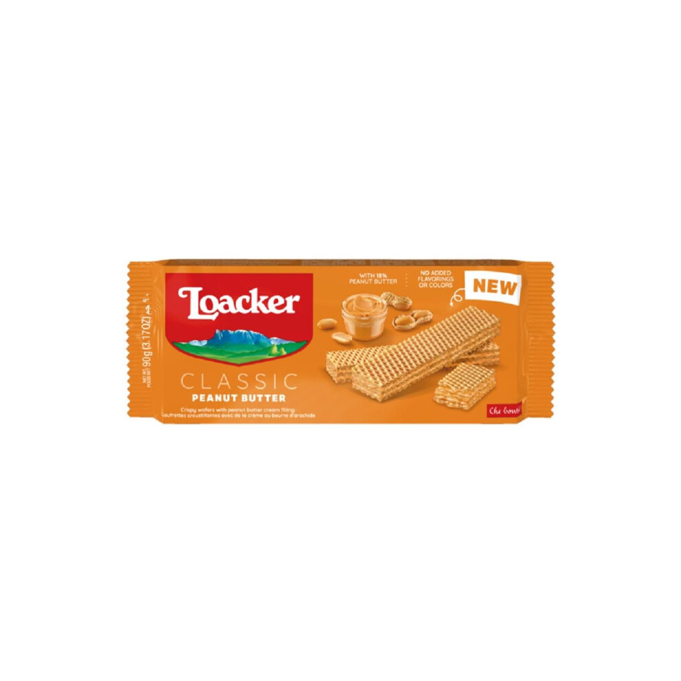 Loacker Peanut Butter Wafer Biscuits 90g 90 g (Pack of 1), brown