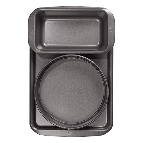 Tala 10A11621 Essential Non-Stick Baking Set - Includes 20 cm Springform Cake Tin, 2 lb Loaf Tin and Baking Tray - Carbon Steel, Wide Flat Handles, Dishwasher and Freezer Safe Cake Tins, Grey