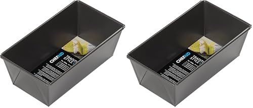 Chef Aid Non-Stick 2lb Loaf Tin, 900g Traditional Rectangular Bread pan Ideal for Bread, Loaves, Cakes. Dishwasher, Fridge and Freezer Safe.,Black, 20cm x 10.5cm x 7cm. (Pack of 2)