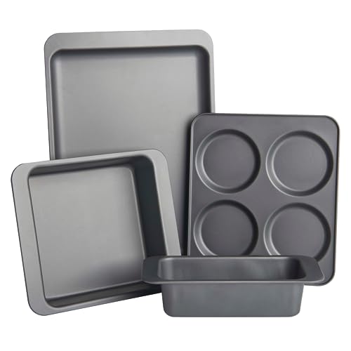 KitchenCraft Non-Stick Baking Set, 4-Piece Bakeware Set Including Loaf Tin, Round Cake Tin, Rectangular Baking Tray and Muffin Tray, Carbon Steel, Gift Boxed