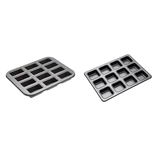 MasterClass Mini Loaf Tin with Loose Bases and PFOA Non Stick in Gift Box, 12 Holes Robust 1 mm Carbon Steel, 27 x 35.5cm, Grey & KCMCHB69 Brownie Tin with Dividers, 34 x 26 cm, Grey