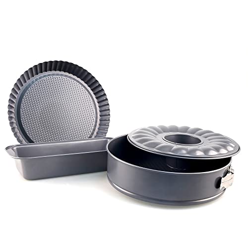 Relaxdays 10027276 Set of 4, Anthrac Cake Set of 5, 26cm Springform Pan with Gugelhopf Insert, Loaf, Flan Tin, Baking Brush, Steel
