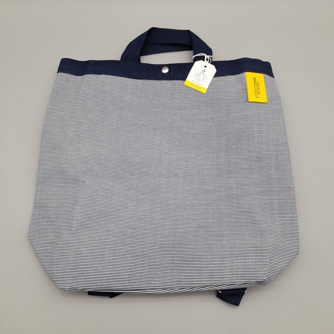 L'Occitane En Provence Tote Bag Blue White Striped Backpack Button