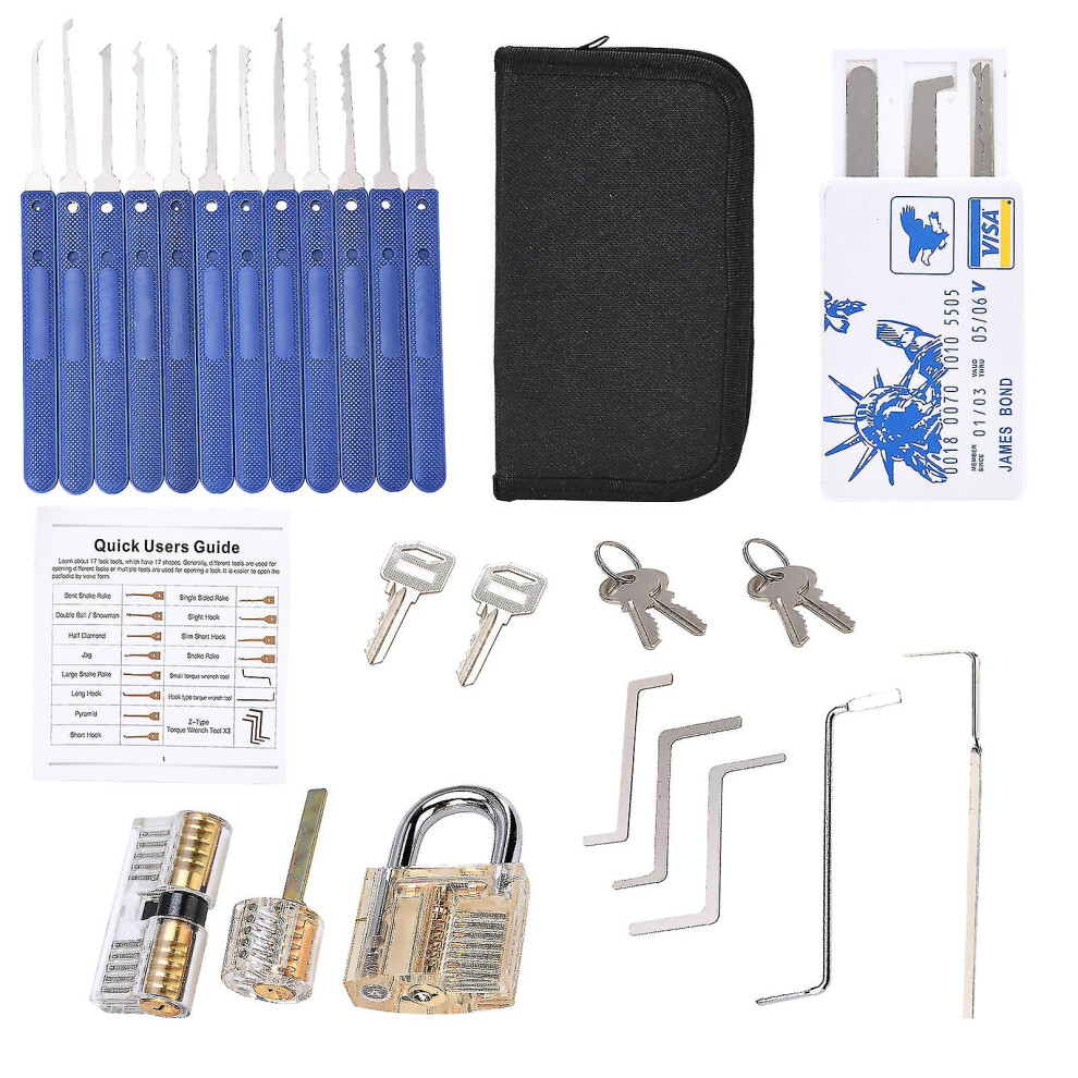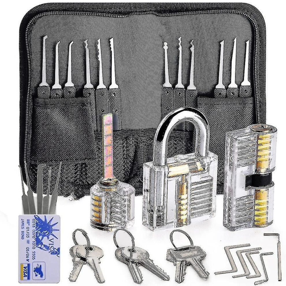 (As show, One size) Lock Picking 20-piece Lock Pick Set With Transparent Training Locks And Instructions compatible Locksmiths, Beginners And Professi