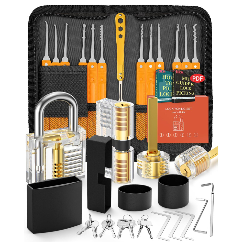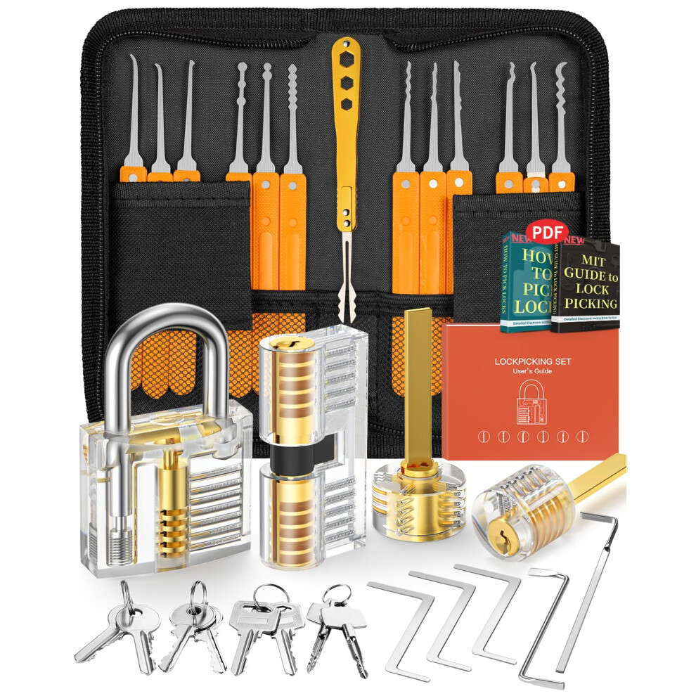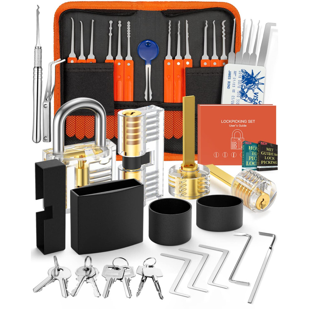 Eventronic Lock Picking Kit, 36-Piece Lock Pick Set with 4 Transparent Training Locks and Manual and Zip Case for Lockpicking, Extractor Tool for Beginner and Locksmith Training(Orange)