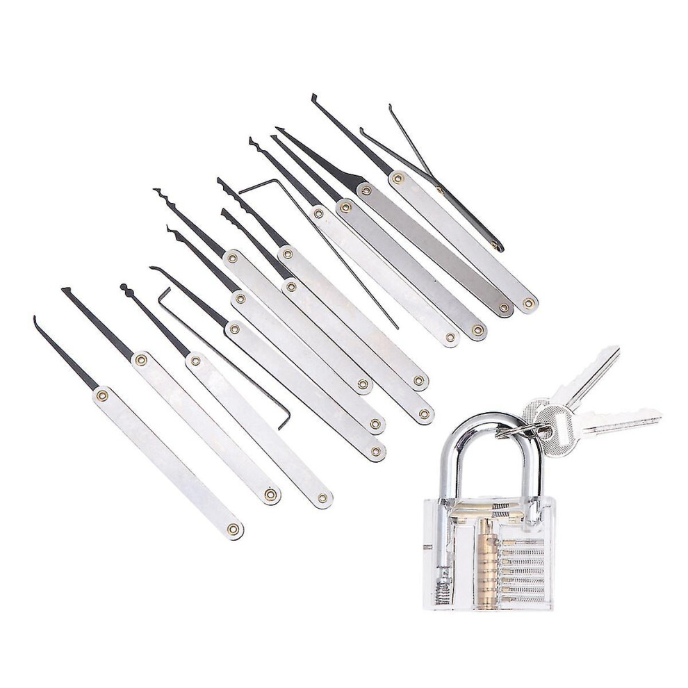15pcs Lock Padlock Picking Kit Tools Transparent Key Extractor Lock Pick Set