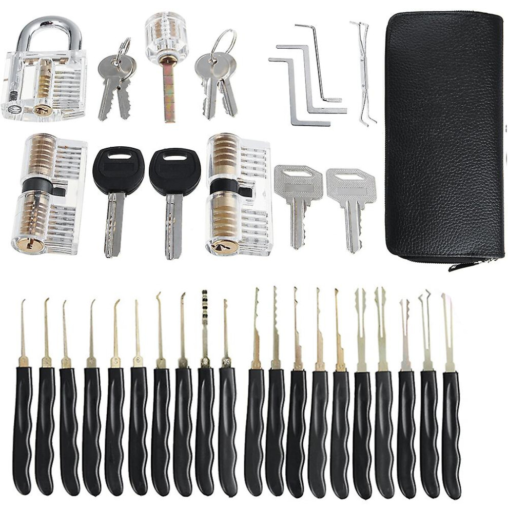 30-piece Lock Picking Set, Lock Pick Set With 3 Transparent Training Locks And Instructions