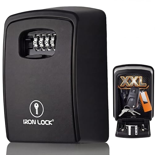 Iron Lock® - XXL Key Lock Box Wall Mount for Keys 4 Digit Combination with Resettable Code with A B Switch Extra Large lockbox Indoor Outdoor Waterproof Big Key Lock Box House Spare Keys Wall Safes