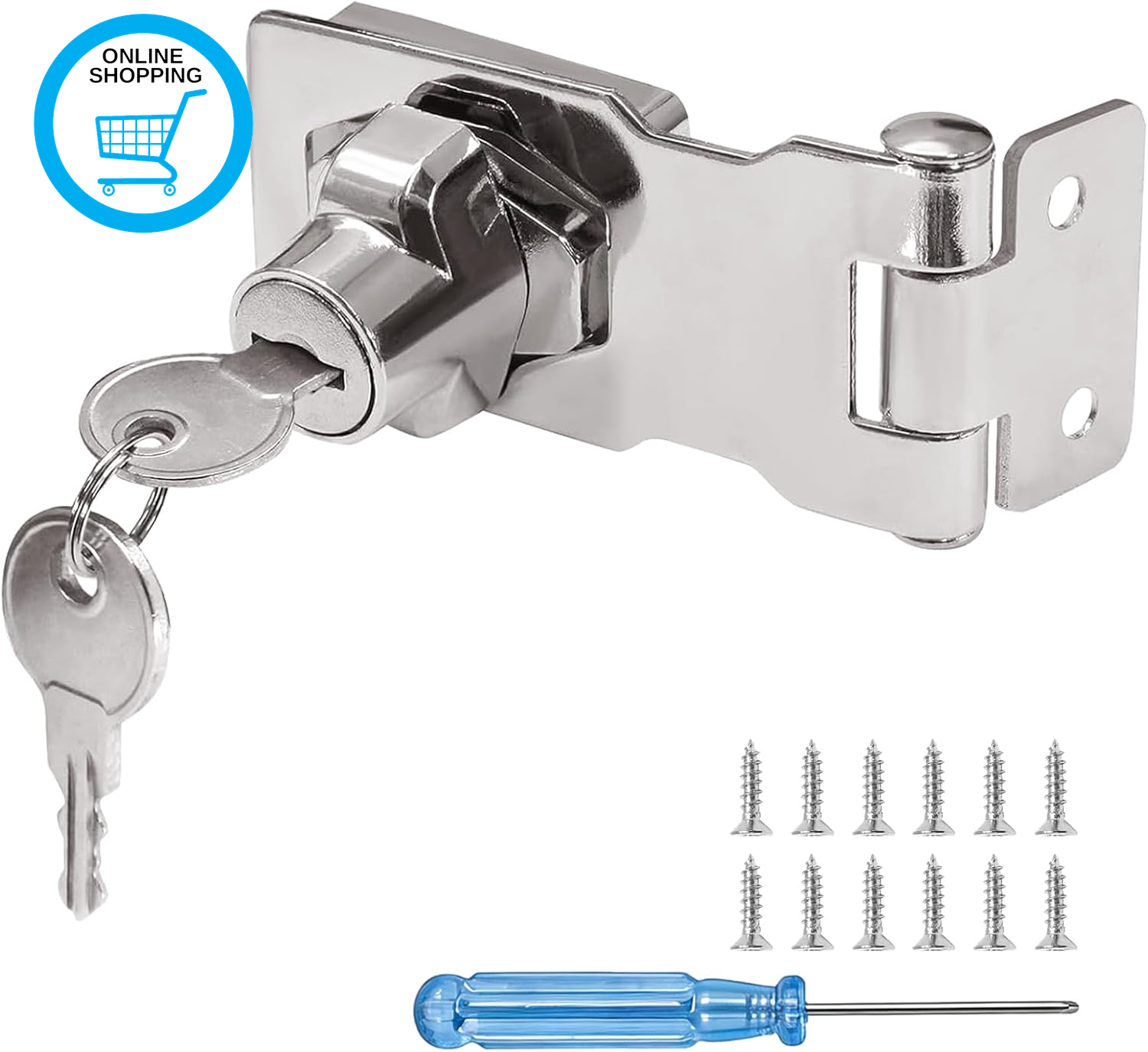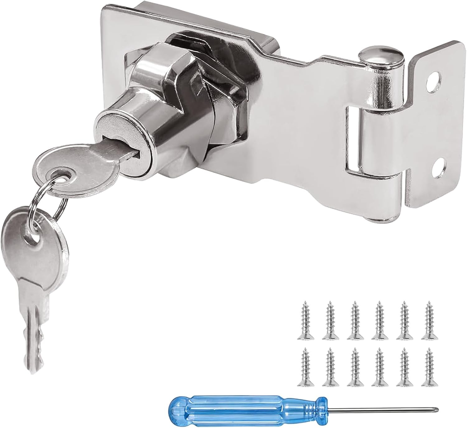 Door Hasp and Staple with Padlock, 90-Degree Door Lock with Keys and Screws, Stainless Steel Garden Gate Lock, Bedroom Door Lock Extra Security, Shed