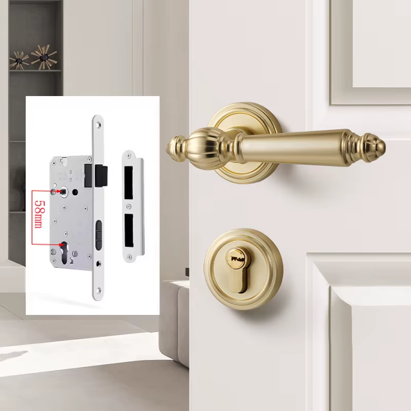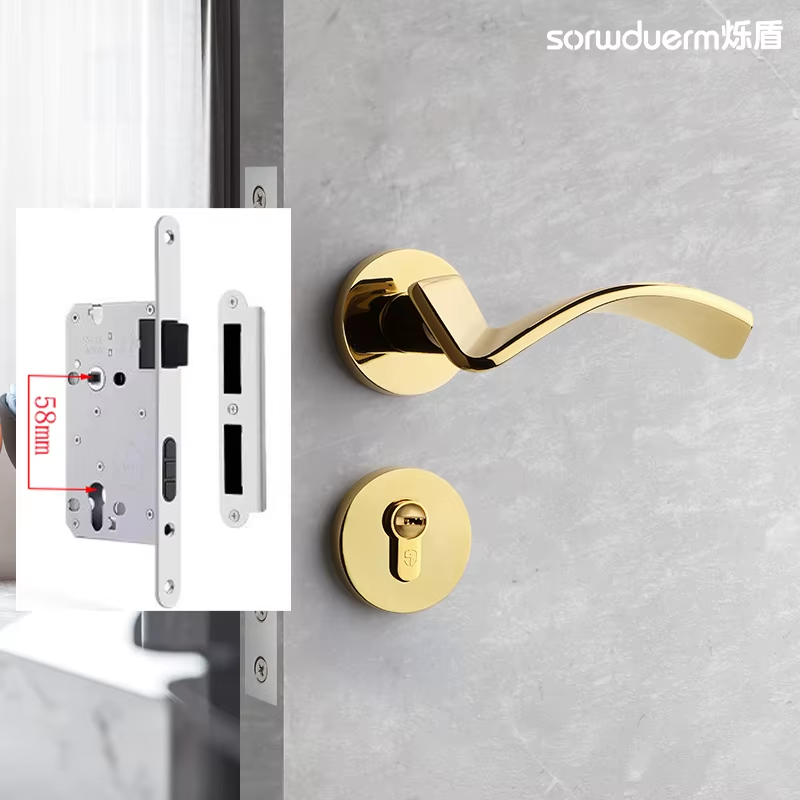 Split Gold Indoor Silent Door Lock, Household Universal Bedroom Wooden Door Hand