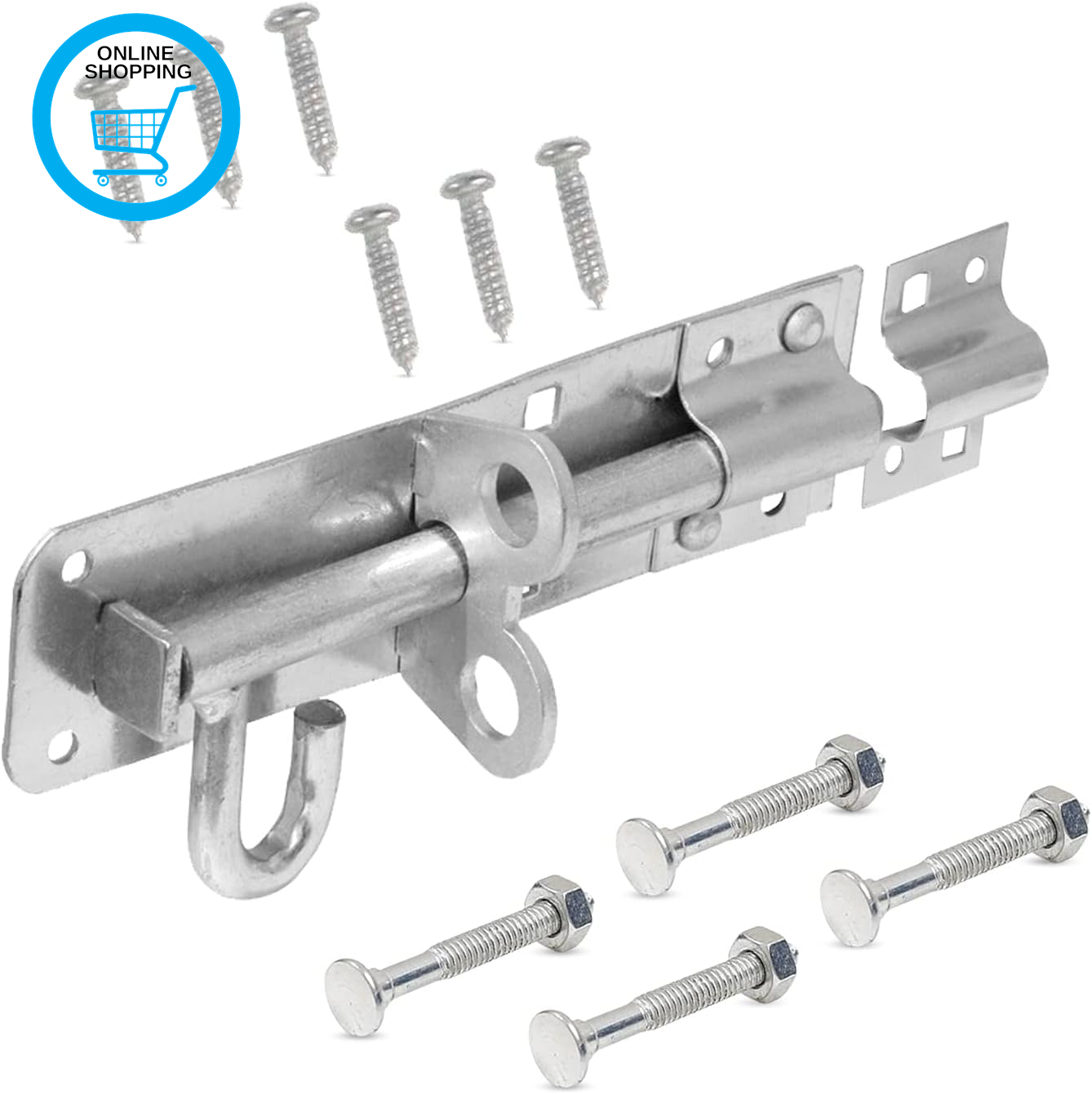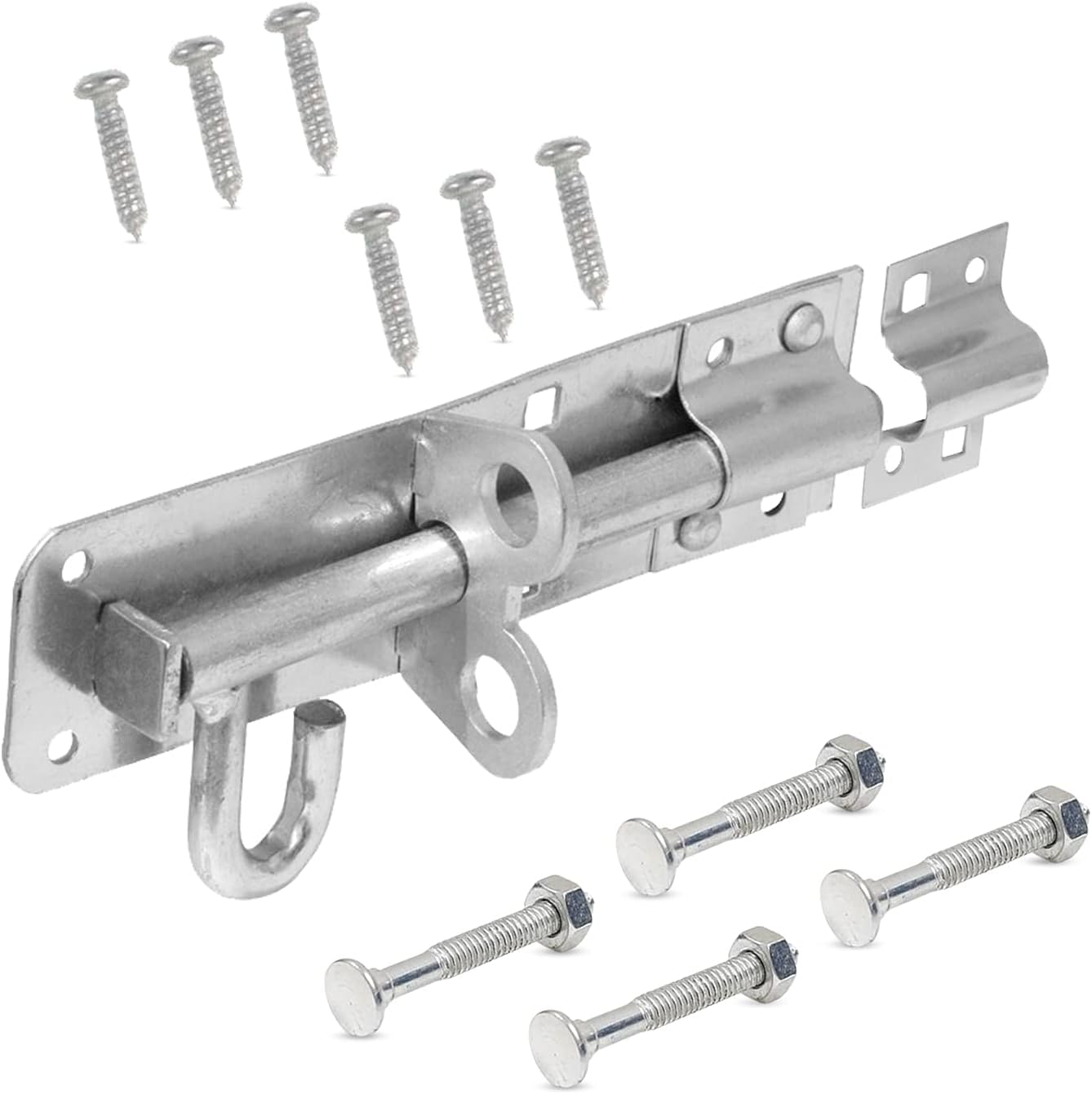 Brenton Bolt Sliding Door Lock for Bedroom Patio Door Security - 6” (152mm) Heavy Duty Zinc Plate Galvanised Gate Latch Garden Shed Gate Bolts for Wooden Gates (Silver)