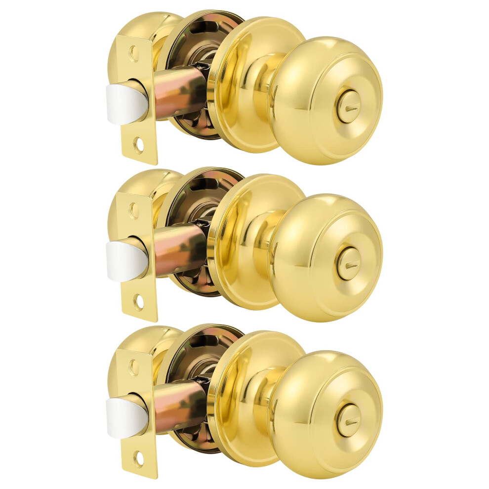 Probrico Privacy Door Knobs Lock Interior Bedroom Bathroom Door Handle Polished Brass Round Ball Keyless Lockset 3 Pack
