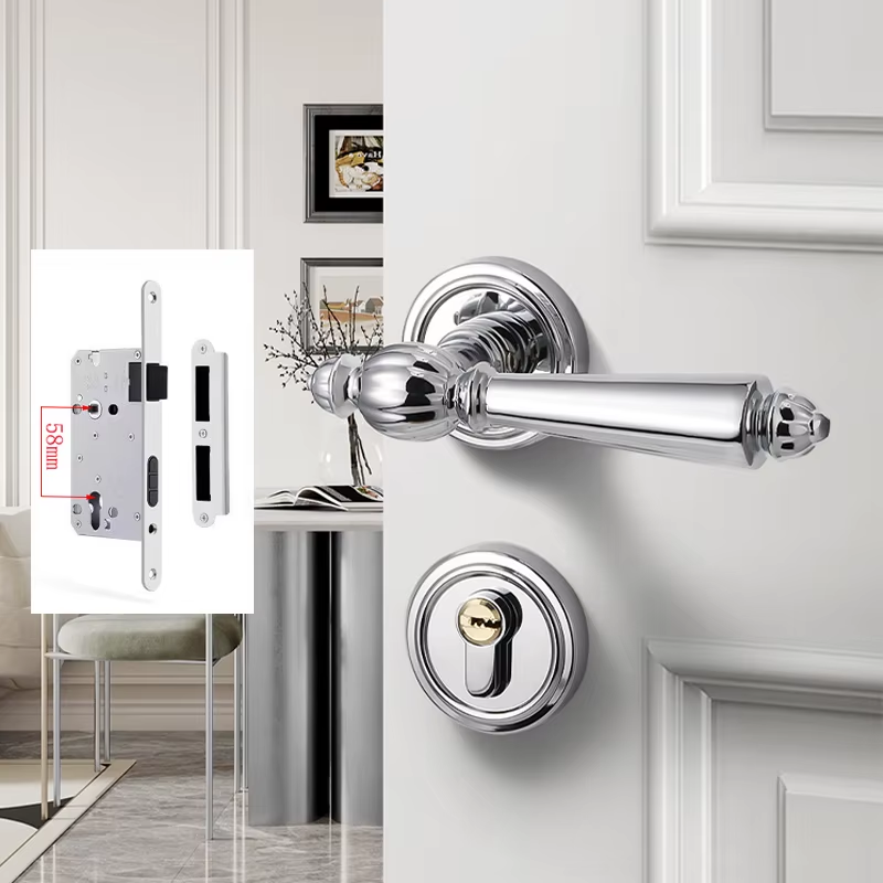 Bright Chrome French Interior Door Lock, Bedroom Silver French Door Handle, Sile