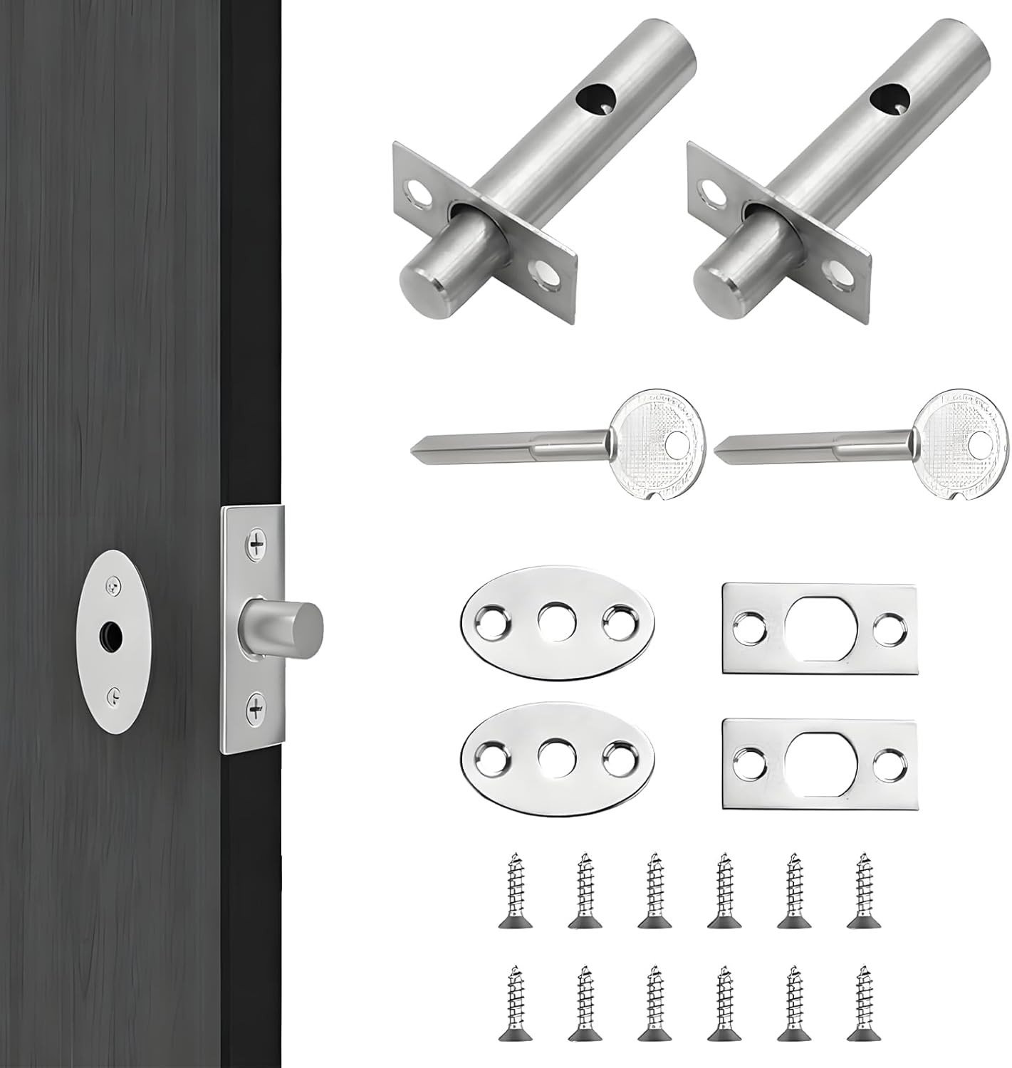 Door Handle Lock with Keys, Bedroom Door Lock Security Lock Set Silver Privacy