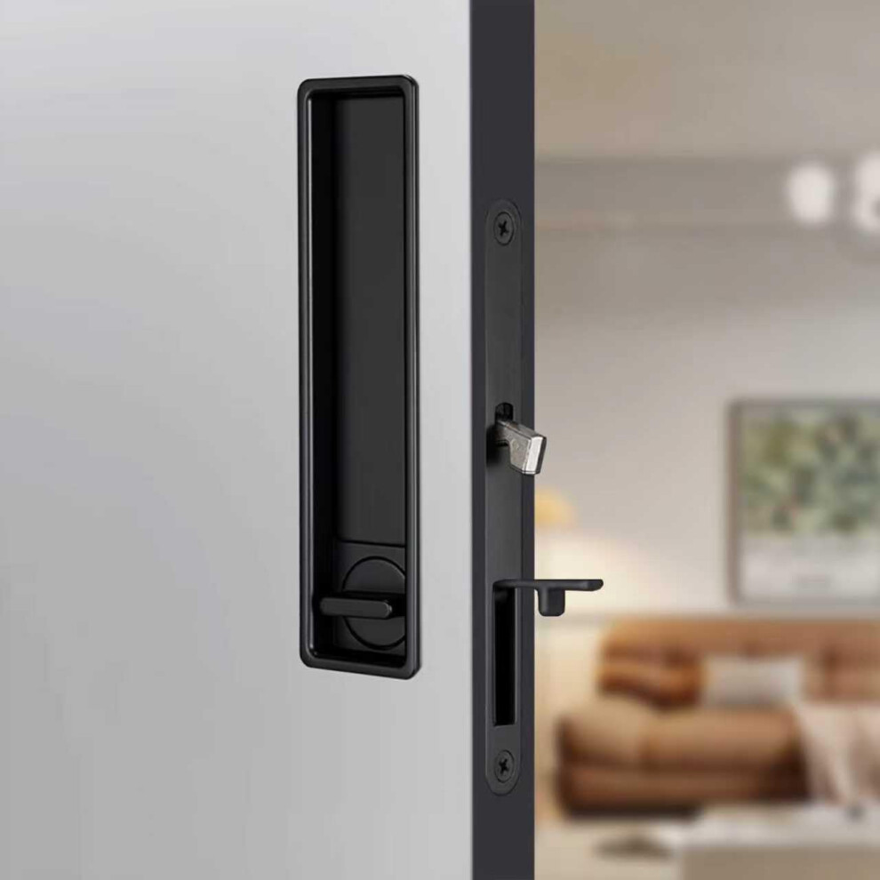 youthua Pocket Door Lock Hardware with Pull Recessed Handle Latch Invisible Sliding Door Lock for Bedroom Kitchen Barn Door (Rectangular Black)