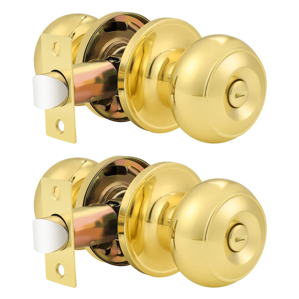 Probrico Privacy Door Knobs Lock Interior Bedroom Bathroom Door Handle Polished Brass Round Ball Keyless Lockset 2 Pack