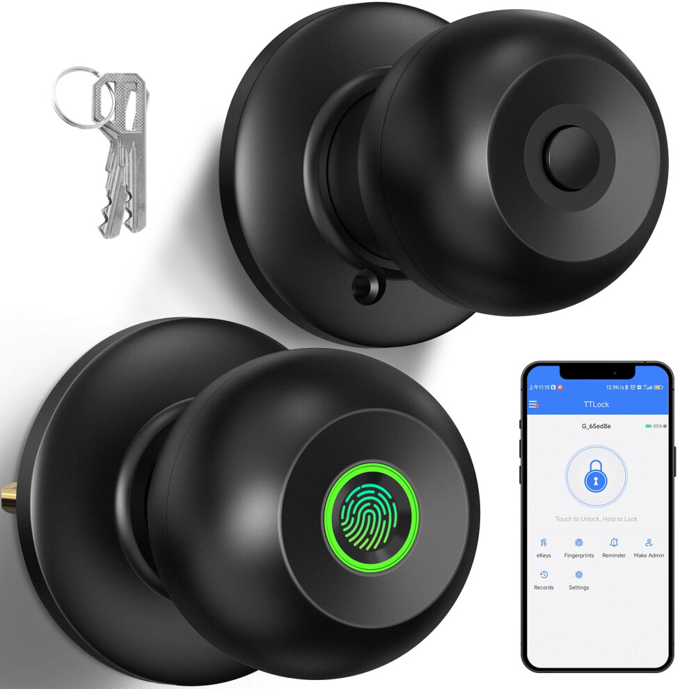 52HZ Fingerprint Door Knob with Lock Smart Lock for Bedroom Door Biometric Door Lock with App Control & Key Thumbprint Keyless Entry Door Lock for