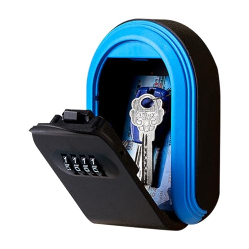 Yorajuy Key Safe Wall Mounted, 4-Digit CombinationLockBox, Key Lock Box Outdoor, Key Safe Box Outdoor, Waterproof and Security Key Cabinet for Home Garage School OfficeKey Storage, Blue