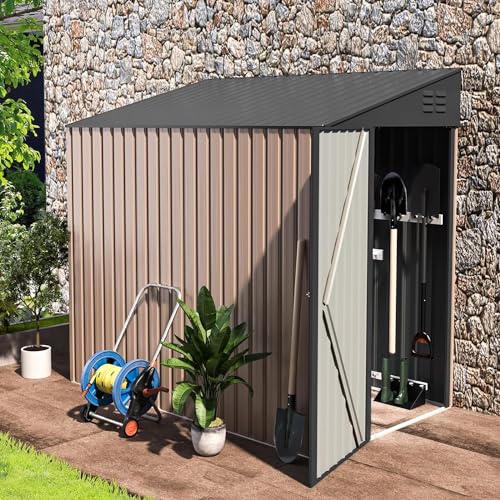 Amopatio Metal Garden Storage Shed 5x3 ft, Small Storage Shed 162x92x182 cm, Outdoor BikeShed Waterproof with Lockable Door for Winter, Backyard, Patio, Garbage Bin, Tools, Brown
