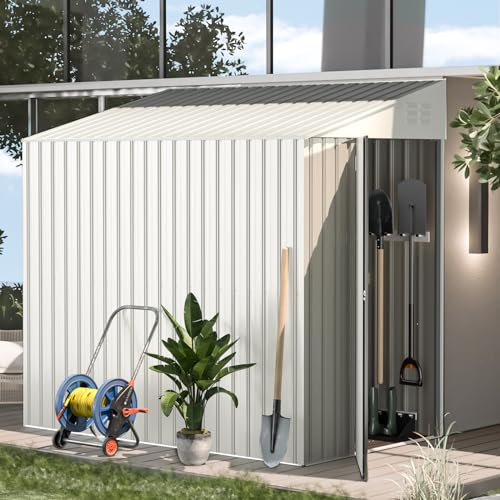 U-MAX 4x7 FT Metal Lean to Storage Shed - Galvanized Steel Garden Storage with Lockable Door, Waterproof for Tools, Lawn Mowers, Bikes - White
