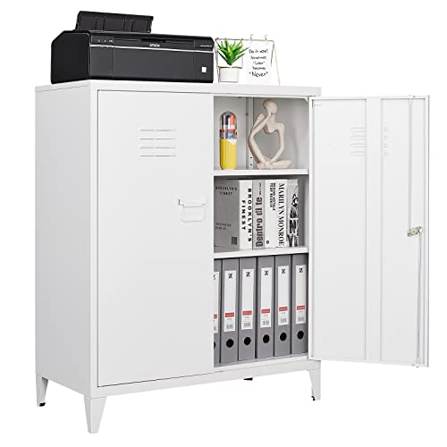 Sightlife Metal Storage Cabinet with Locking Doors Adjustable Shelves Metal Cupboards Lockable Filing Cabinets Locker Floor Standing Sideboard for Home Office Garage 80 x 40 x 100cm (White)