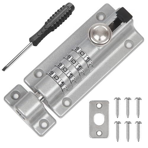 Weielt Digit Combination Locking Bolt, 4 Digit Sliding Lockable 120mm Stainless Steel Silded Garden Gate Latch for Wooden Gates, Gate Door Bolt Lock with Anti-Tamper Screws (Silver)