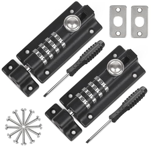 Weielt Digit Combination Locking Bolt, 4 Digit Sliding Lockable 120mm Stainless Steel Silded Garden Gate Latch for Wooden Gates, Gate Door Bolt Lock with Anti-Tamper Screws (Black 2Pack)