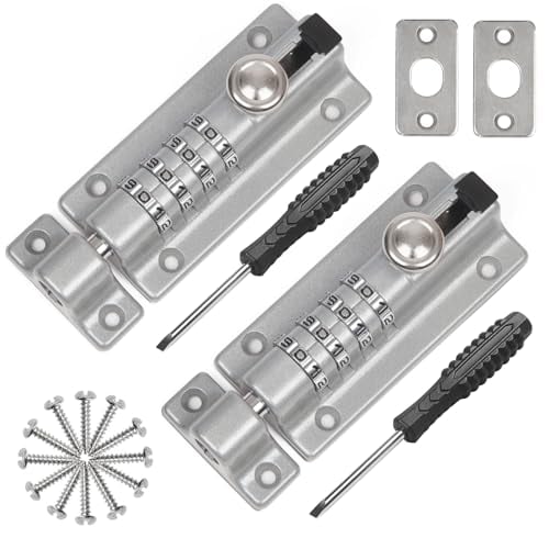 Weielt Digit Combination Locking Bolt, 4 Digit Sliding Lockable 120mm Stainless Steel Silded Garden Heavy Duty Gate Latch for Wooden Gates, Gate Door Bolt Lock with Anti-Tamper Screws (Silver 2Pack)