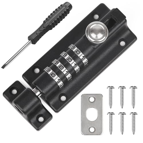 Weielt Digit Combination Locking Bolt, 4 Digit Sliding Lockable 120mm Stainless Steel Silded Garden Gate Latch for Wooden Gates, Gate Door Bolt Lock with Anti-Tamper Screws (Black)