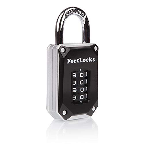 Padlock 4 Digit Combination Lock - for Gym School Locker, Outdoor Gate, Shed, Fence, and Storage - Weatherproof Metal - Keyless, Easy to Set, Resettable - Silver