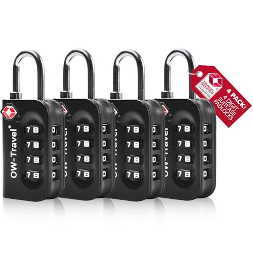 OW-Travel Luggage Locks TSA Approved (4 Pack Black) 4 Digit Suitcase Padlocks. TSA Locks Approved Security Backpack Combination Padlock for Suitcase, Case, Luggage, Bag, Gym Locker