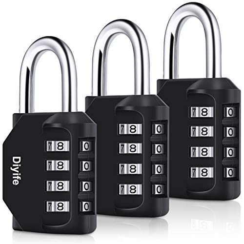 Combination Padlock, [3 Pack] Diyife 4 Digit Lock Combination, Padlock Weatherproof Outdoor for School Gym Locker, Shed, Fence, Hasp, Garage(Black)