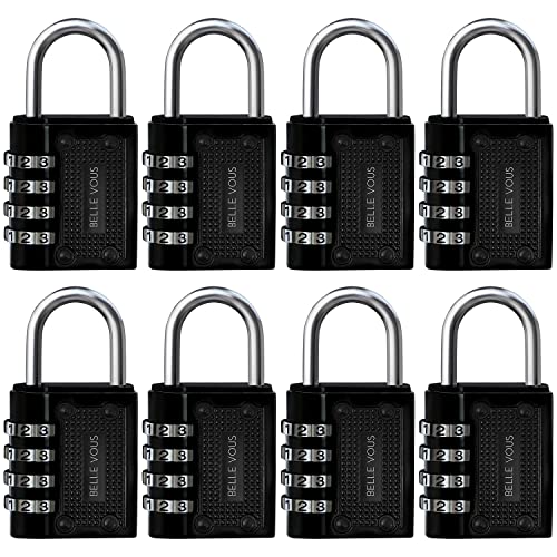 Belle Vous Padlocks with Code Set of 8 - Black Digit Combination Padlock Outdoor - Heavy Duty Waterproof Indoor/Outdoor Security Lock for Gym School Locker Shed Fence & Gates