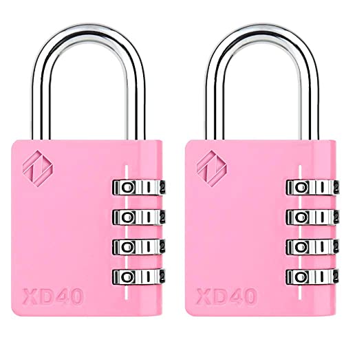 [ZARKER XD40] Heavy Duty Outdoor 4-Digit Combination Padlock for Locker, Gym, gate, shed, Tool Box, Door, Cabinet and Garage with Code - Pink 2packs