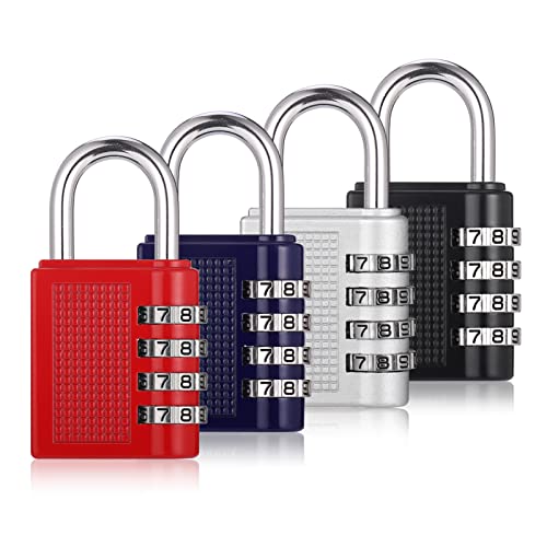 4Pcs Combination Padlock, Heavy Duty Metal Padlock for Gym Locker, Padlocks with Code, Gym Locker Padlocks, Waterproof Combination Lock for Gate Shed Door Suitcase (Black Red Silver Blue)