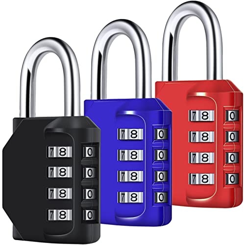 Combination Padlock, [3 Pack] Diyife 4 Digit Lock Combination, Padlock Weatherproof Outdoor for School Gym Locker, Shed, Fence, Hasp, Garage(Black&Red& Blue