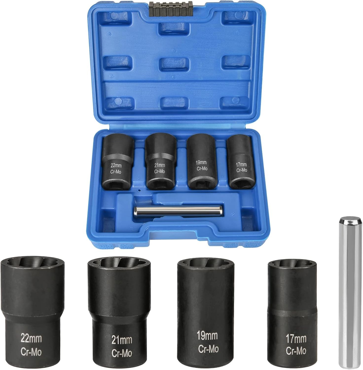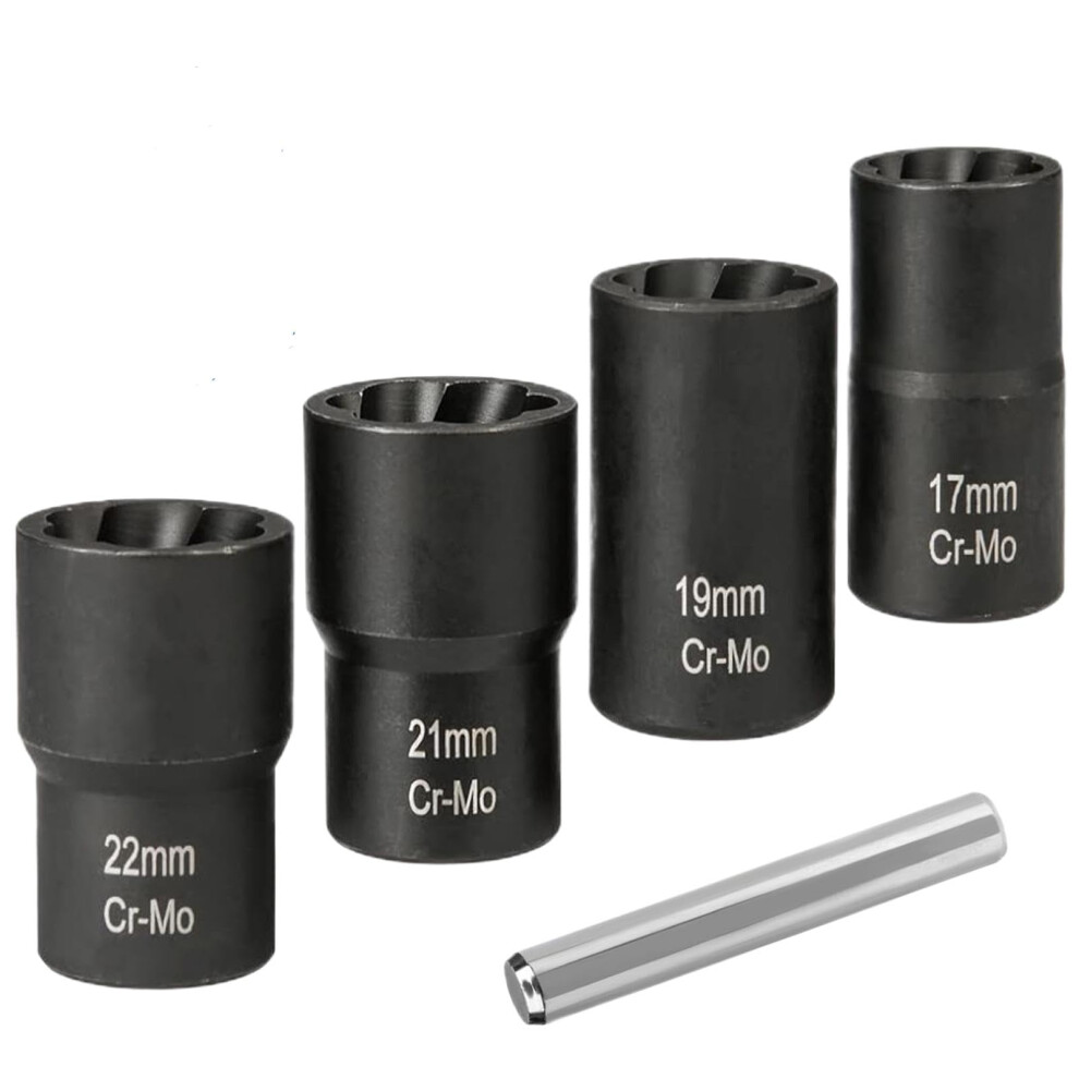 Locking Wheel Nut Removal Tool 5-Pc Bolt Extractor Set, Impact Lug Nut Remover Socket For Damaged Rusted Bolts 17mm-22mm