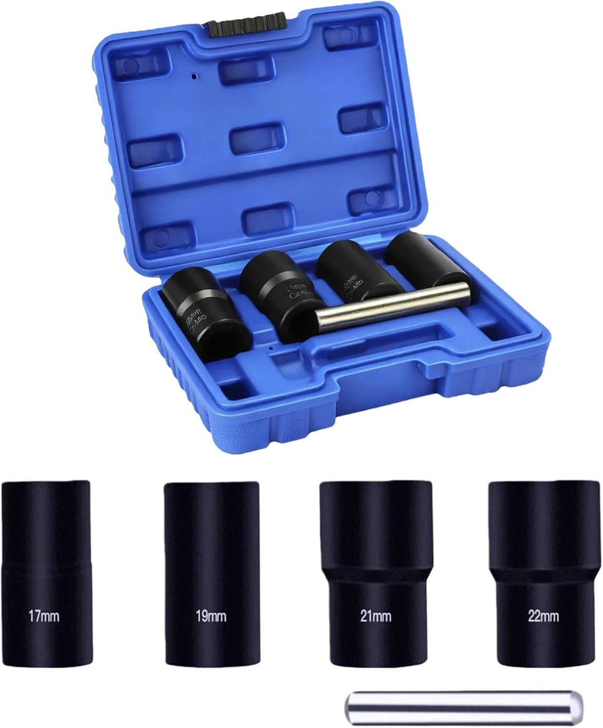 Spurtar Locking Wheel Nut Removal Tool, 1/2” Drive Twist Socket Set Lug Nut Remover Socket Tool for Removing Damaged, Rusted, Rounded-Off Bolts 5Pcs 17mm,19mm,21mm,22mm Socket with 1PCS Bar