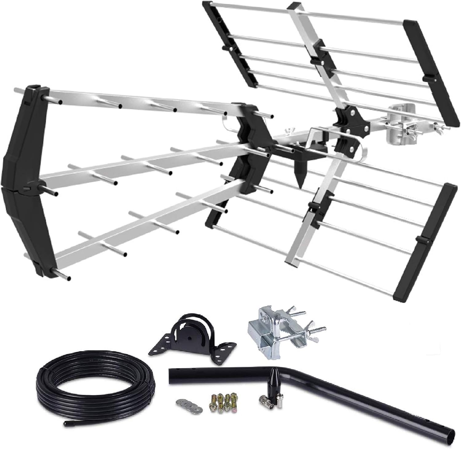 4G Digital Outdoor TV Aerial Antenna Installation Kit, Roof Loft Aerials for Digital Smart Freeview HD outdoor TV Aerial antenna + Male Female Coaxial Connector 10m RG6 Cable Fixing Screws nuts bolts