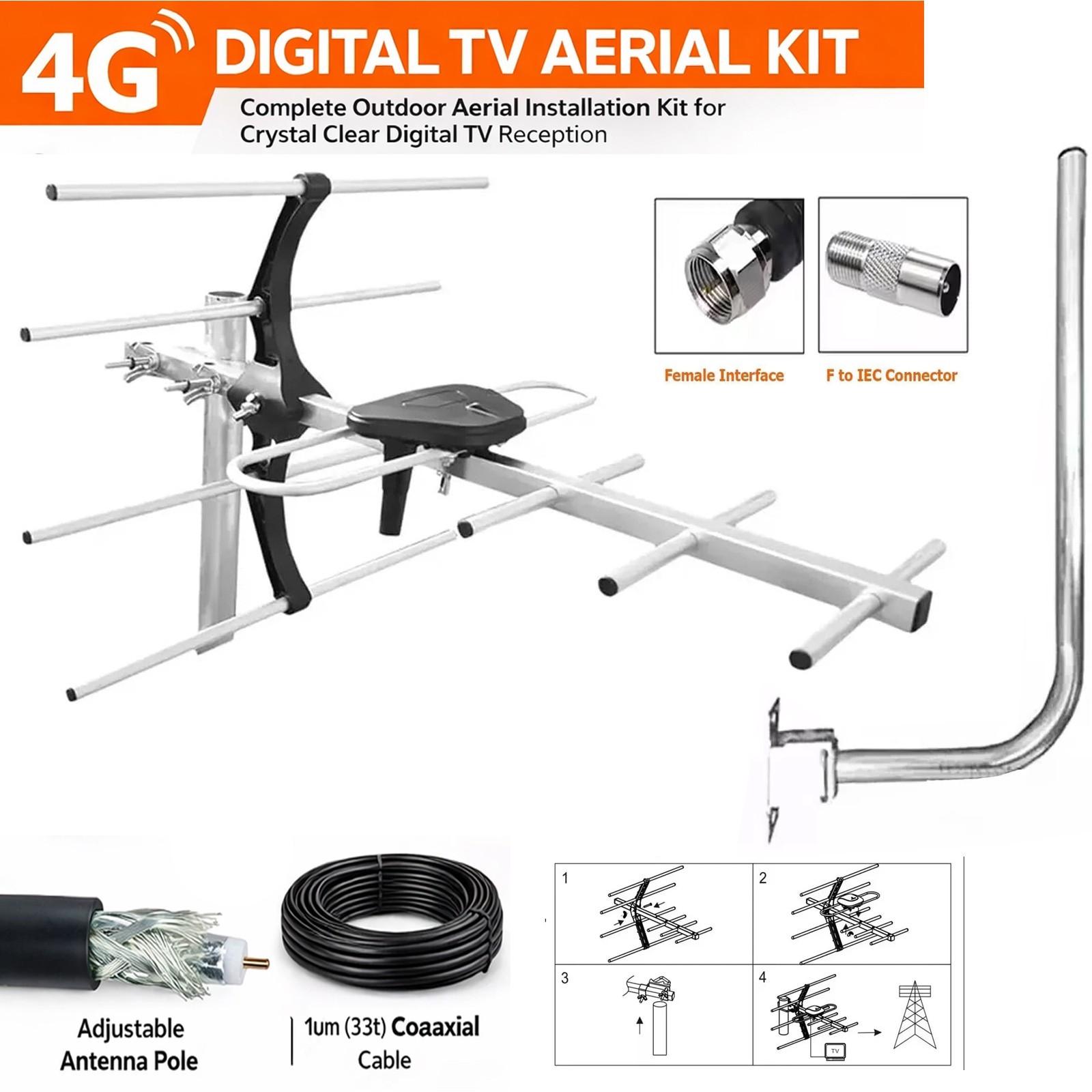 4G Digital Outdoor TV Aerial Antenna Installation Kit, Roof Loft Aerials for Dig