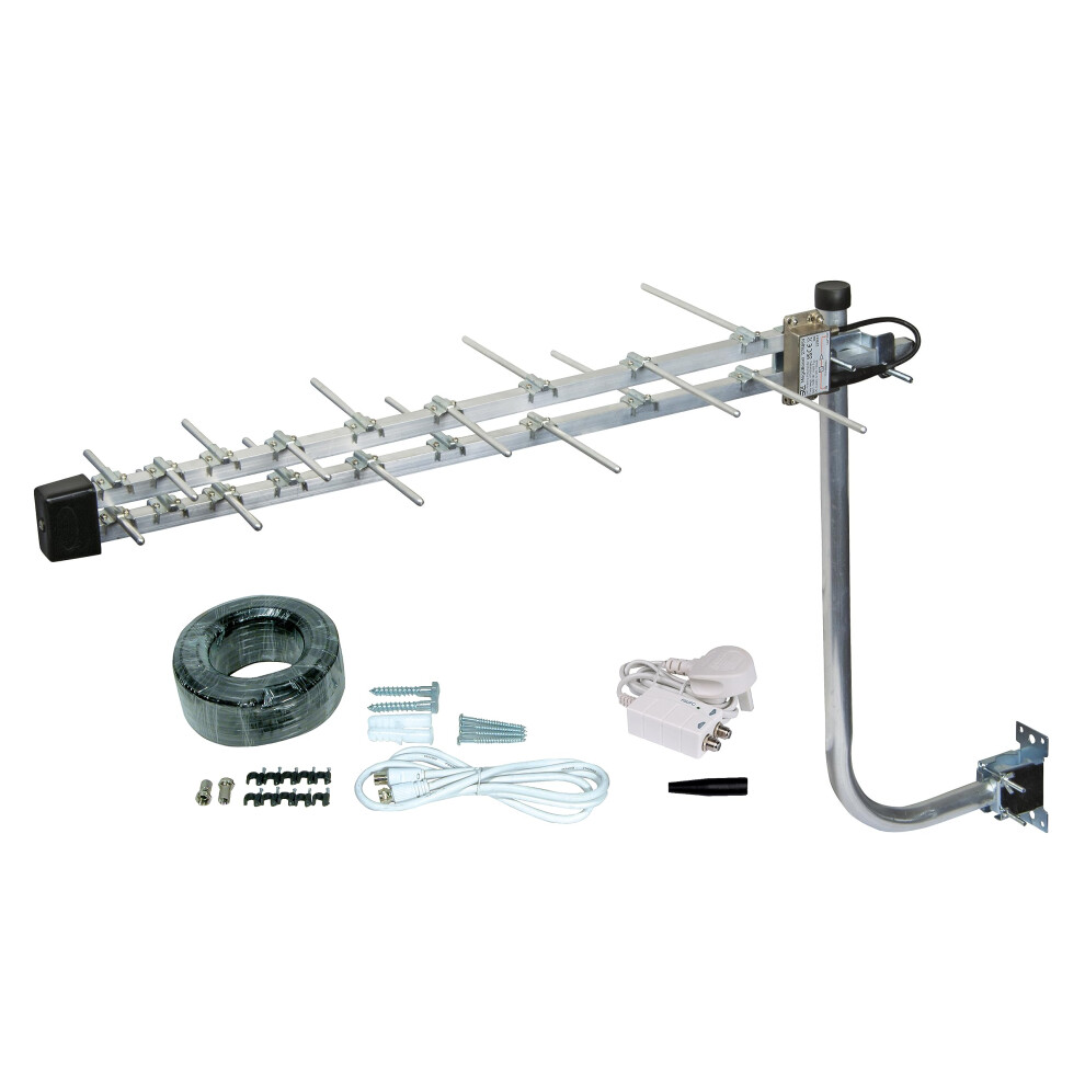 SLx 18 Elements Loft & Outdoor TV Aerial Kit Ultra Compact Amplified MegaBooster Log Periodic Antenna Kit Digital TV 4K HD Compatible