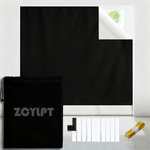 ZCYLPT 100% Blackout Blind,145X300CM Blackout Blinds Stick On,Temporary Blackout Curtain for Window,Cut to Any Size,No Drill Blinds Blackout with Self Adhesive Tapes for Bedroom,Nursery,Loft,RV Car