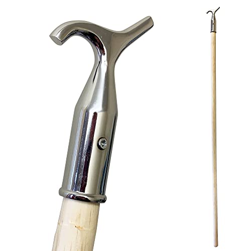 Window Pole Opener and Loft Ladder Pole with Hook | 118cm Smooth Wooden Window Opener Rod with Chrome Pole Hook Suitable for Sash or Velux Windows, Attic, Loft Hatch, and Blinds