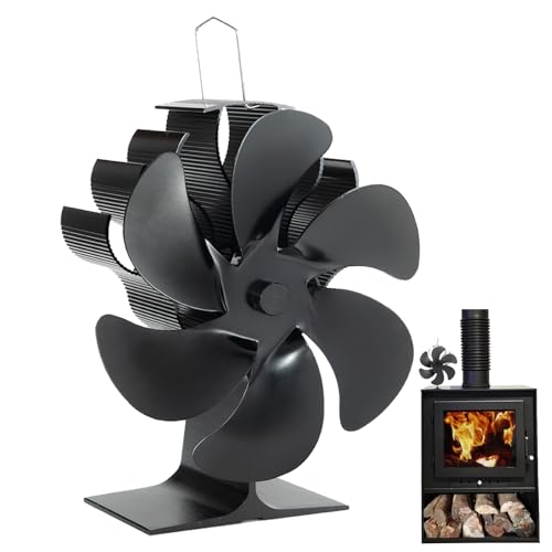 Ldafava Wood Stove Fan Heat Powered Non-Electric Lotus Shaped Silent Operation 6-Blade Fireplace Fan with Bracket for Wood Burning Stove/Pellet/Log Burner