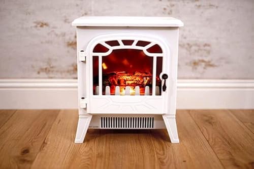 VonHaus Electric Stove Heater 1800W – Indoor Log/Wood Burner/Burning Effect, Free Standing Fire, Portable Fireplace, LED Flame, 2 Heat Settings, Adjustable Thermostat, White – H52 x W38 x D26cm